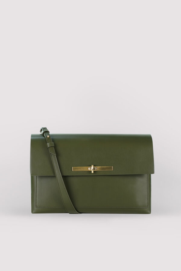 Soft and structured, compact yet spacious shoulder bag has been designed for every and any occasion. It comes with two different shoulder straps, one in webbing that can be worn cross body, and one in leather which you can wear over the shoulder. Both are removable so you can use the bag as a clutch. It is seasonless and timeless, a classic to last for years. The comfortable external pocket on the back can contain an iPad mini as can the front pocket under the flap. The inside front compartment is organized with a flat pocket that can hold an iPhone 14 plus or similar while the back compartment is securely closed with a zip.